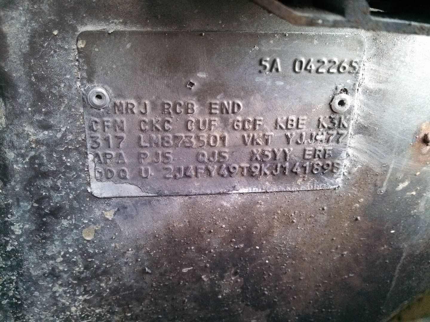 The jeep vin charts break down the yj wrangler by year; 4x4 4.2 6 cylinder,5 speed transmission,power steering,tube bumpers,hardtop and doors (no. Match up the possible letter code on the chart that morglan posted to what you find on that tag.